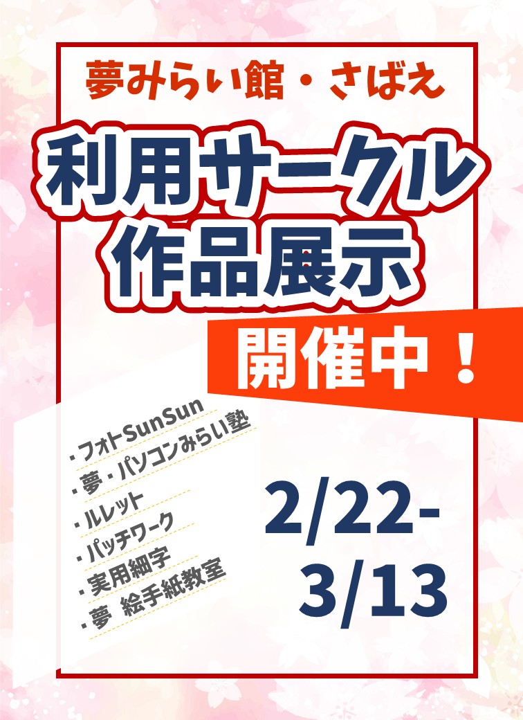 夢みらい館・さばえで活動されているサークルさんの作品を展示します。