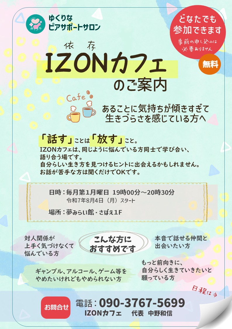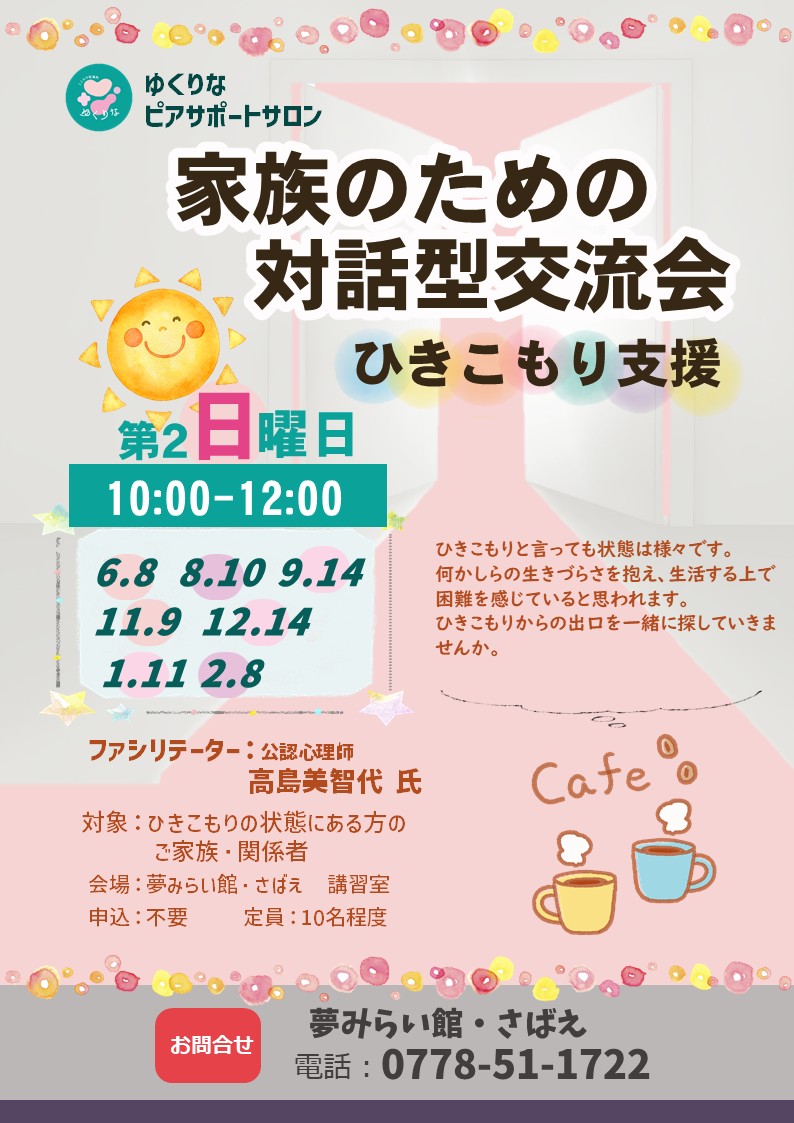 同じ悩みや生きづらさを抱えた方同士が集まって、おしゃべりしながら「ひとりじゃないよ」って思えるような、ほっと安心できる場所をつくります。聞いているだけでも大丈夫。気軽にのぞいてみてください。毎月、いろいろなテーマで開催します!!